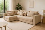 Découvrez le canapé d’angle Lary Moderna, une pièce maîtresse au design contemporain, habillée d’un somptueux velours côtelé épais beige qui mêle douceur, style et robustesse. Conçu pour offrir un confort supérieur au quotidien, ce canapé associe une assise généreuse, des coussins moelleux et une structure solide pour un rendu aussi esthétique que durable.