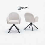 La chaise Nola se distingue par son design élégant et son confort optimal. Revêtue d’un tissu de couleur taupe et soutenue par des pieds en métal noir, elle combine style et solidité. Son assise moelleuse et sa fonction pivotante à 360° degrés en font un choix parfait pour accompagner votre table de repas ou votre espace bureau.