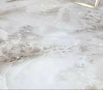 • Plateau en verre trempé effet marbré blanc beige, résistant et raffiné.
