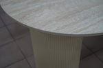 Table Repas Calypso – Céramique Effet Travertin & Pieds Bois Beige