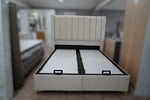 Offrez vous le lit Marseille aussi élégant que pratique, avec un design en velours raffiné et un coffre de rangement spacieux.