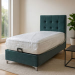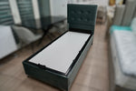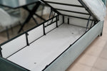 Offrez vous le lit Vision aussi élégant que pratique, avec un design en velours raffiné et un coffre de rangement spacieux.