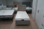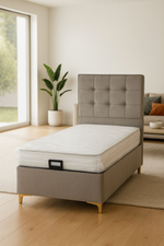 Offrez vous le lit Vision aussi élégant que pratique, avec un design en velours raffiné et un coffre de rangement spacieux.