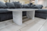 • Table basse disponible en trois finitions : effet travertin, effet noyer ou effet marbré blanc gris/pieds blancs.