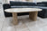 – Version effet travertin : plateau en céramique effet travertin avec un support en bois MDF sous la céramique, garantissant solidité, durabilité et des pieds en bois MDF coloris travertin.